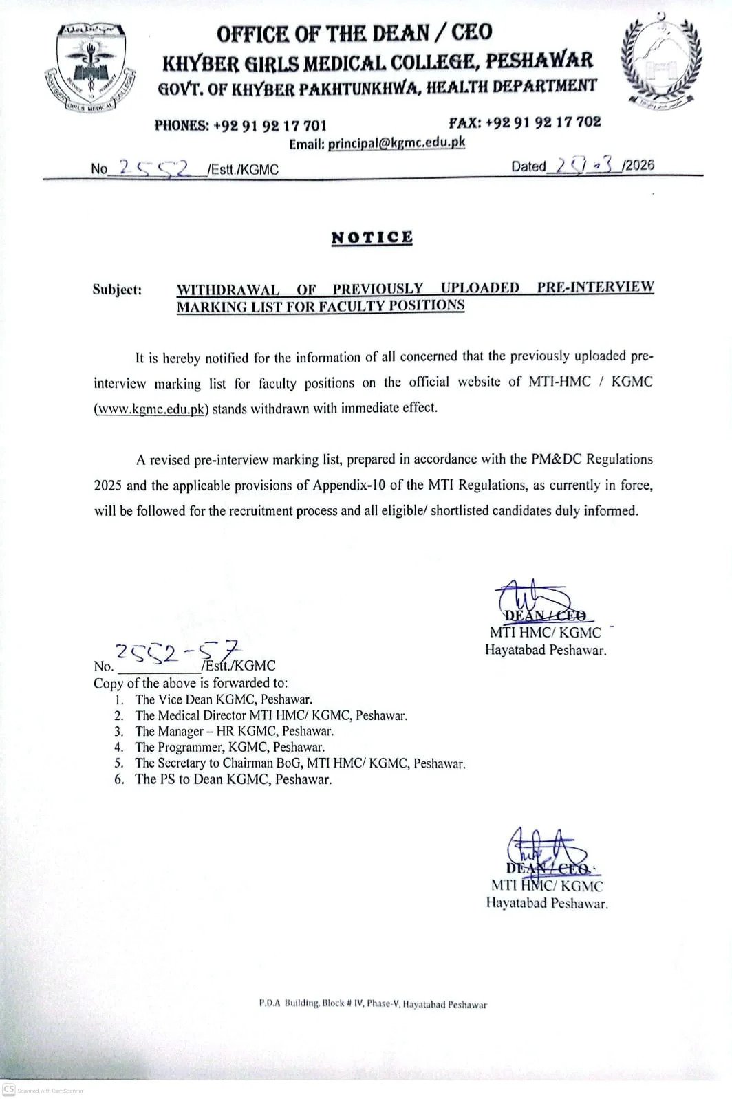 Withdrawal of Previously Uploaded Pre-Interview Marking List for Faculty Positions